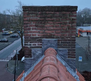 Losliggende stenen aan de schoorsteenkop